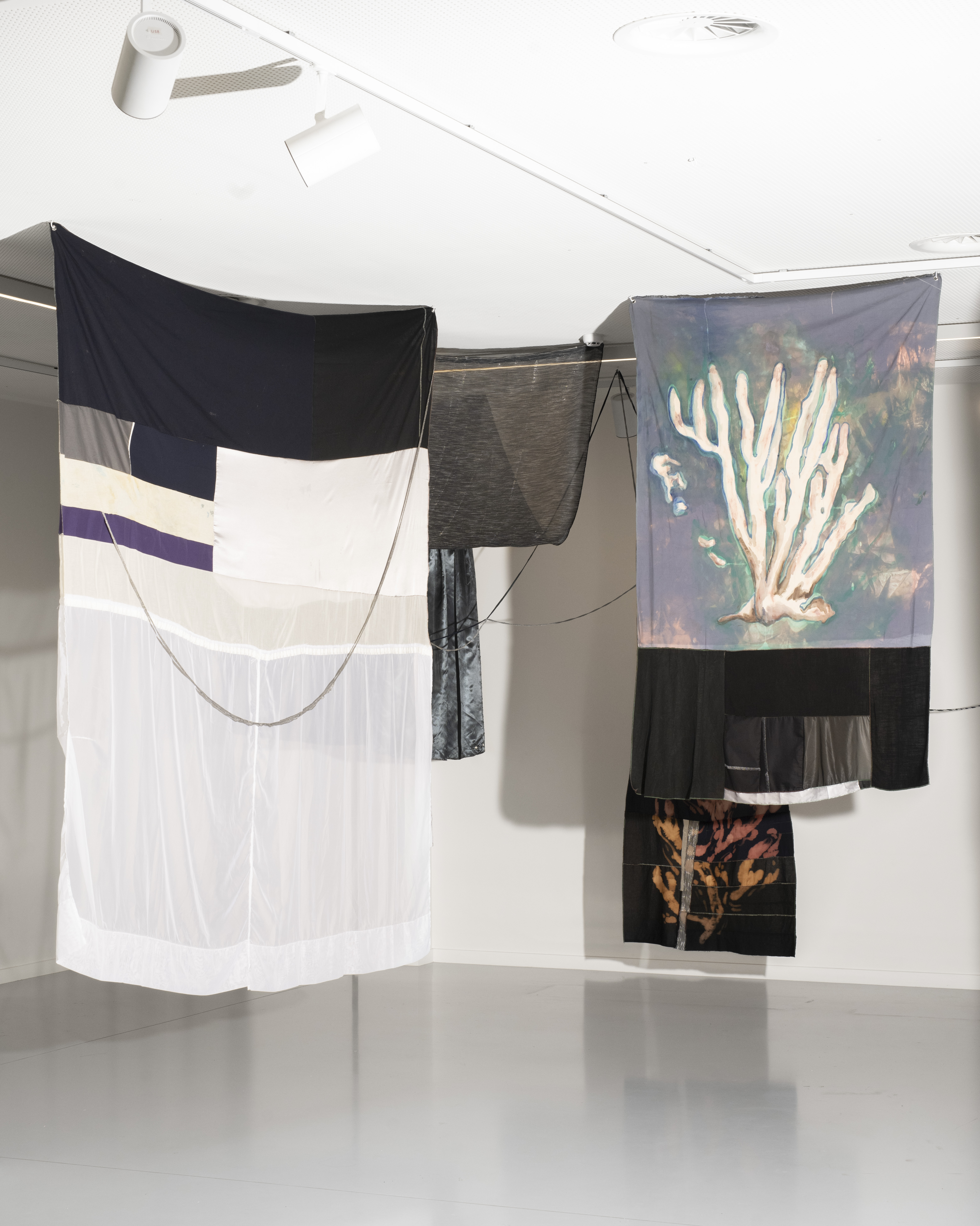 Lou Cocody-Valentino extends this sensibility through woven assemblages of recycled plastics, printed fabrics, painted wood, and yarns. Drawing on her upbringing in Martinique and her experience of living across multiple cultural geographies, she creates intimate material compositions that resemble poetic archipelagos—fragmented yet connected, echoing themes of memory and identity.