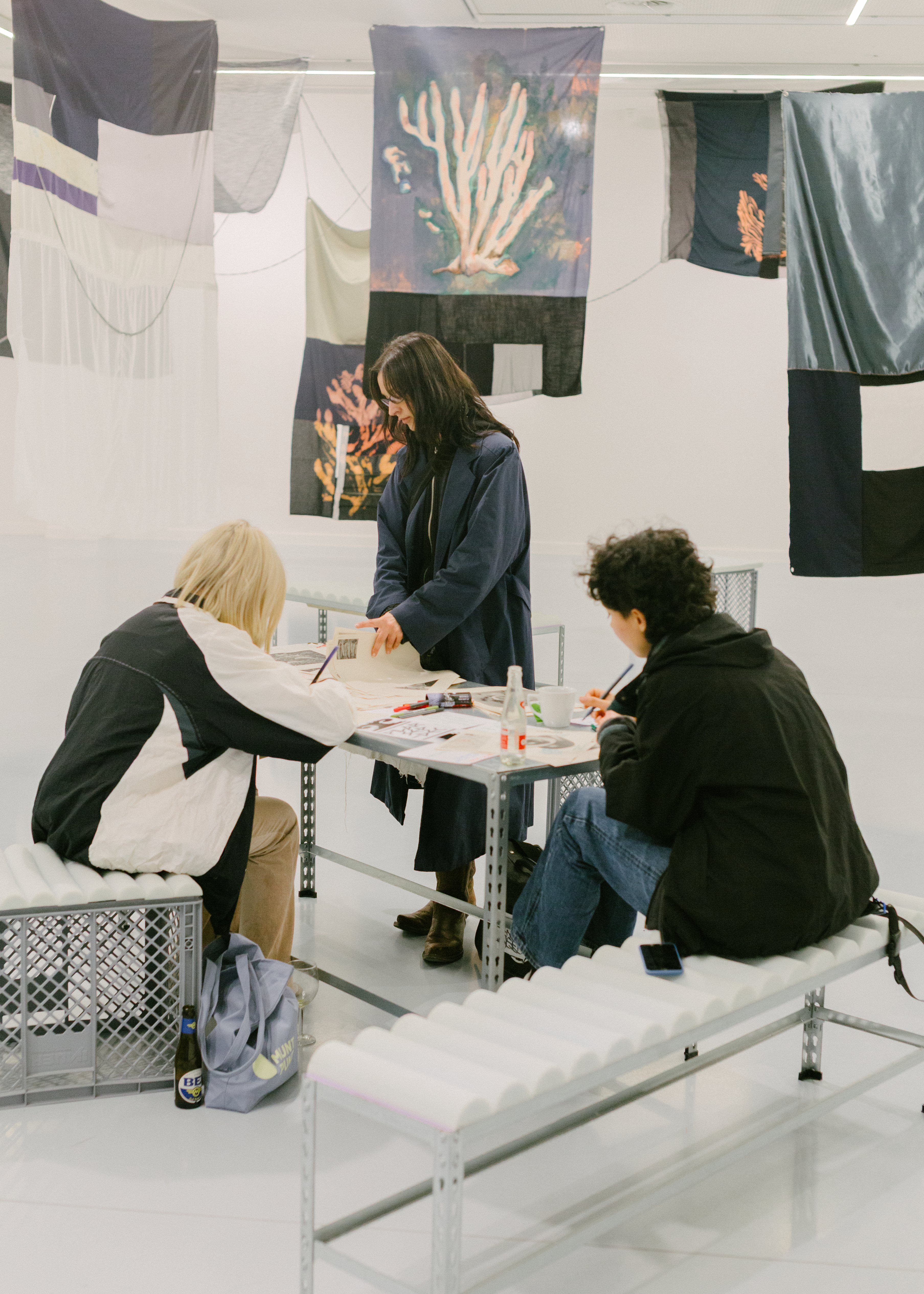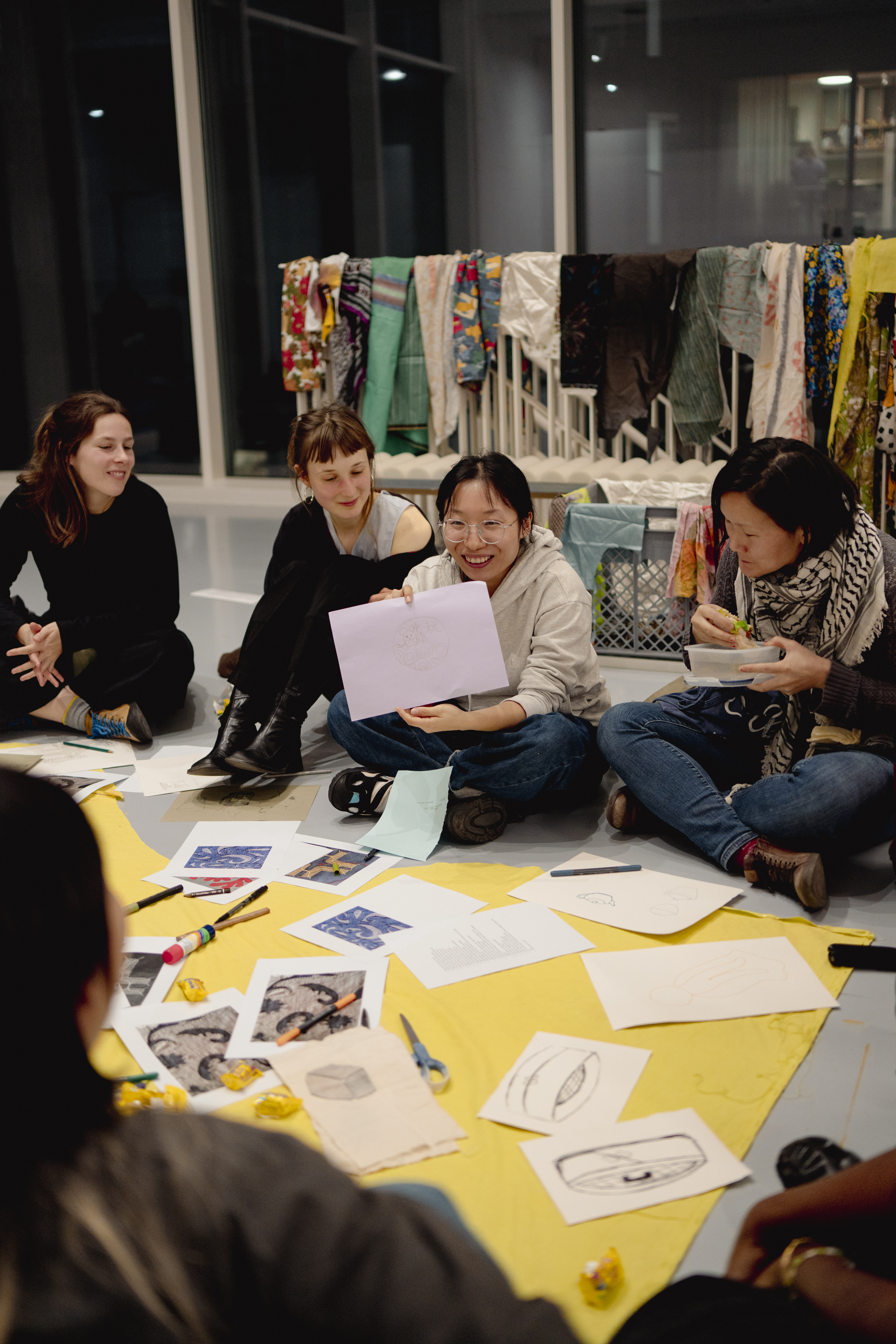 This dispersed and unstable form of collectivity resonates with Pushing Hands, who bring together mapping archives, video, photography, textiles, and food in a collective installation. Their work invites audiences to handle documents, leaf through memories, share mantou buns, or witness carpets unfolding across the floor. Each gesture foregrounds relationality—less about finished objects, more about traces of encounters, processes of gathering, and the care embedded in collective work.